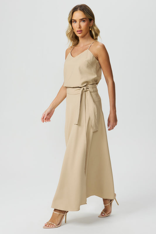 Saia midi transpassada bege Fato Básico