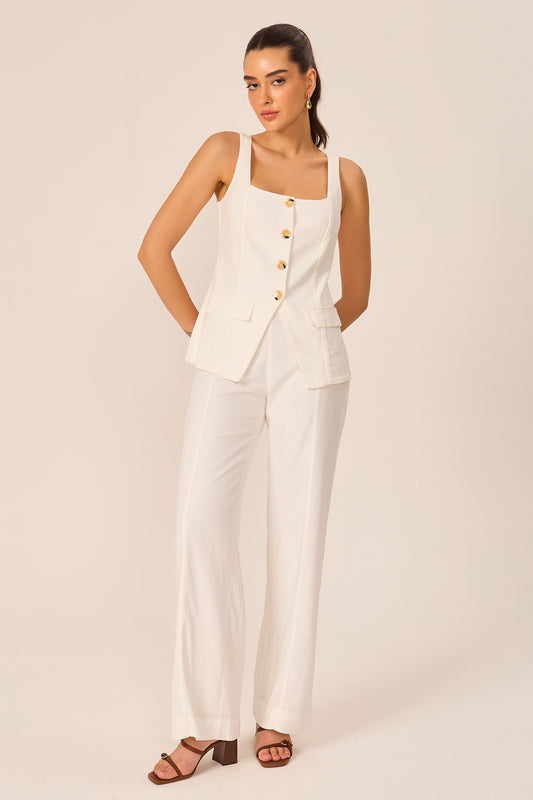 Calça pantalona em linho off white Fato Básico