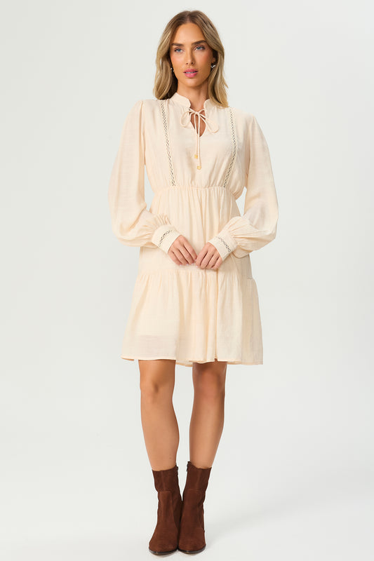 Vestido curto manga longa baunilha Fato Básico