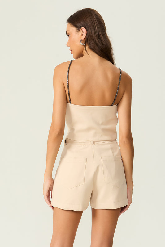 Shorts alfaiataria com cinto bege Fato Básico