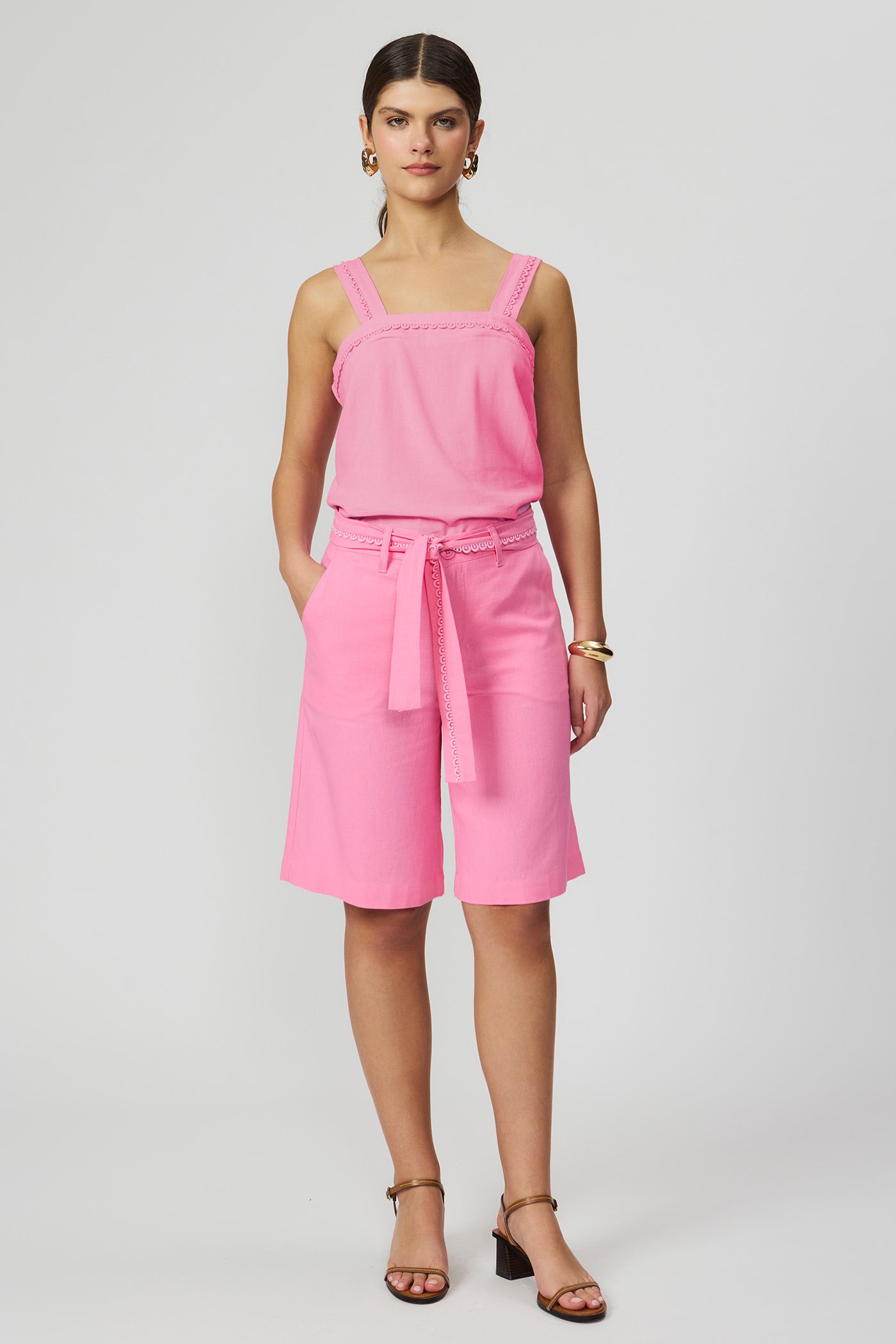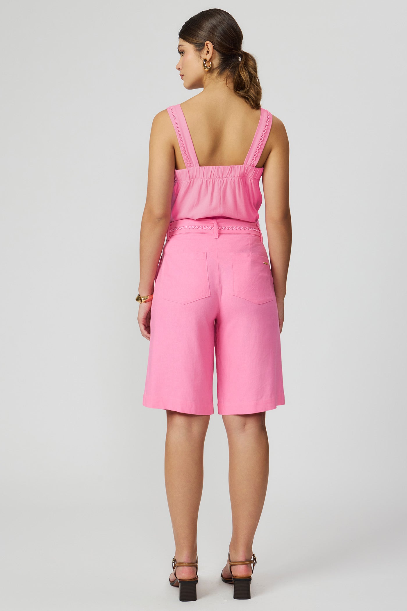 Bermuda linho rosa com faixa Fato Básico