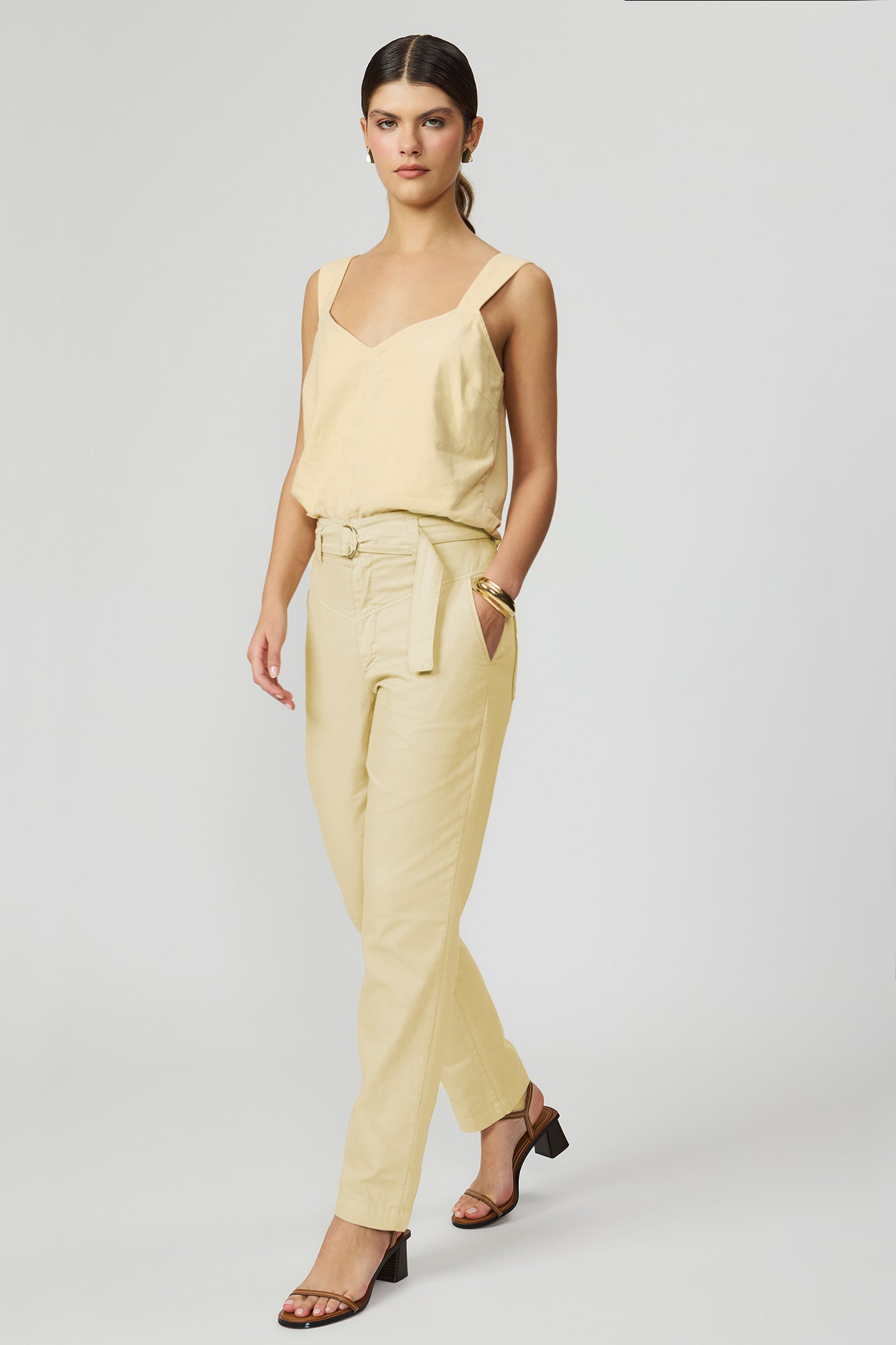 Calça reta com cinto amarelo manteiga Fato Básico
