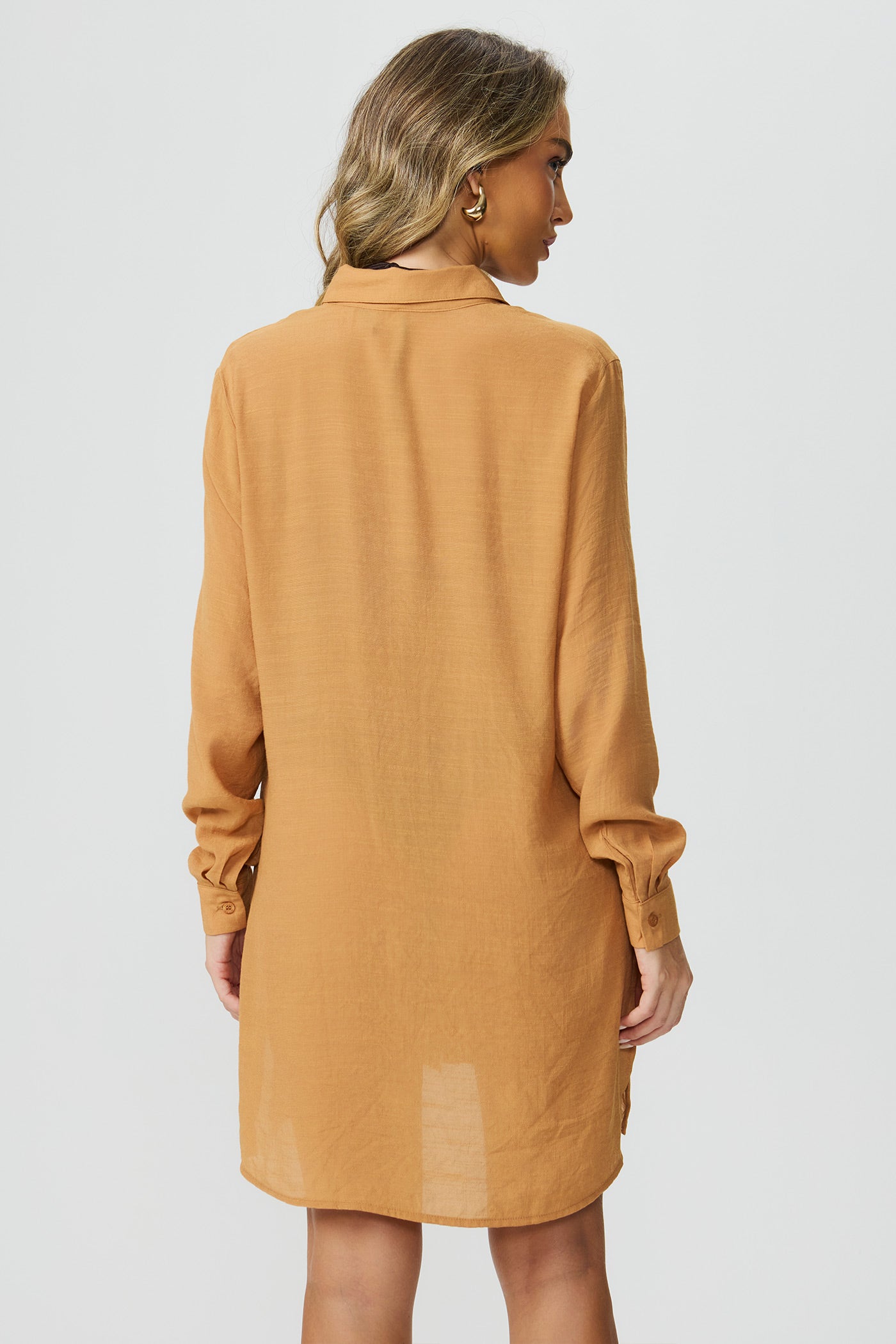 • Design: modelagem solta com mangas longas, gola clássica e fechamento frontal por botões.