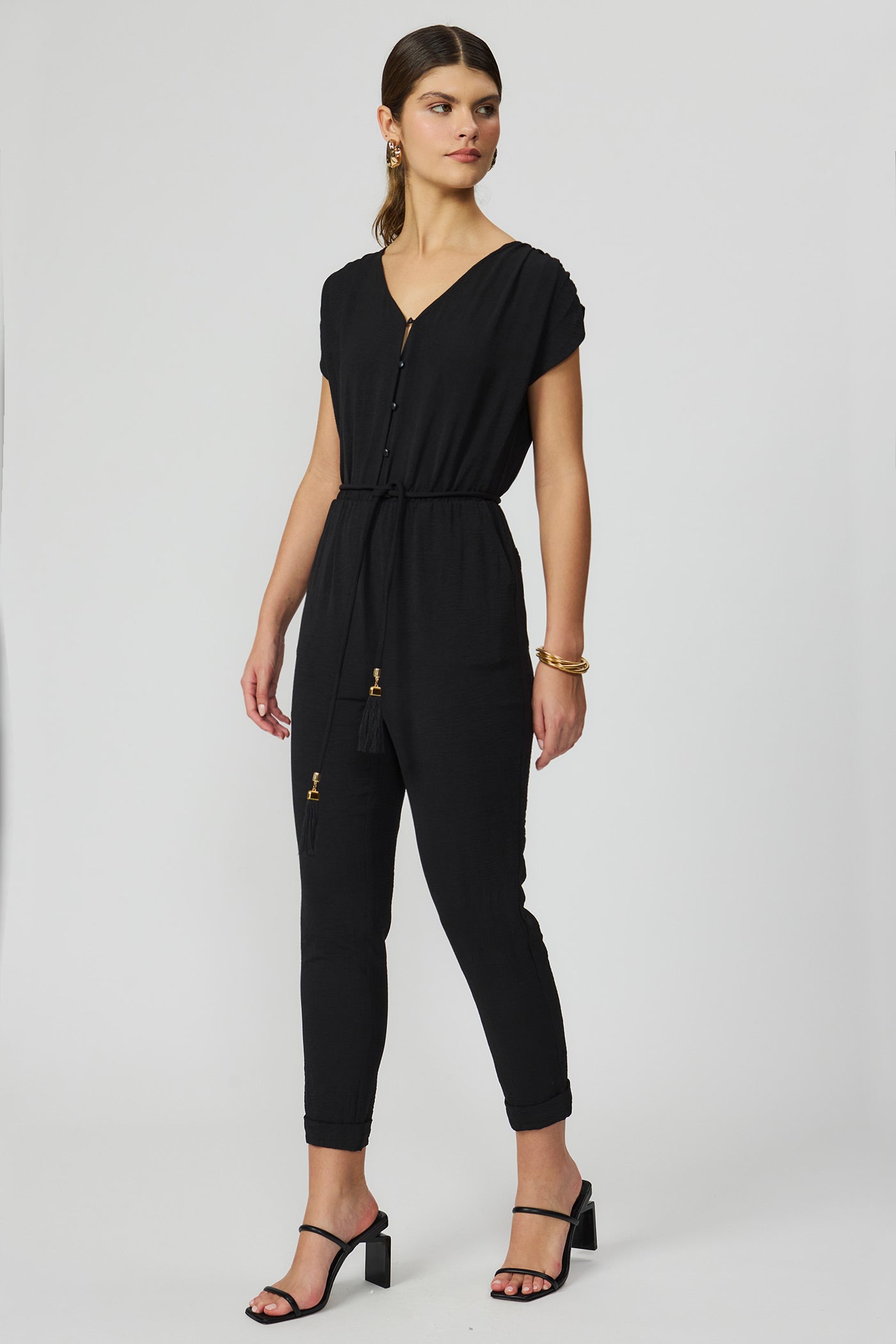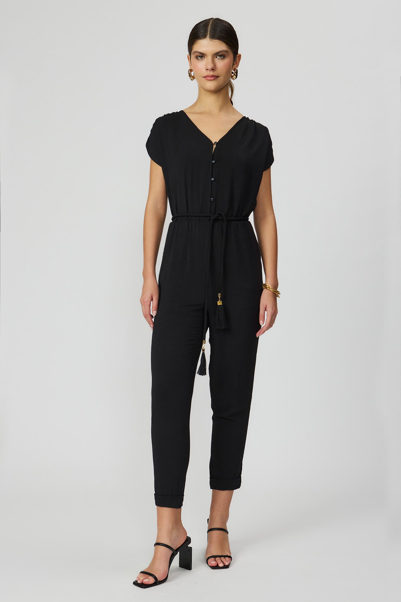 O macacão preto da Fato Básico é uma peça única que combina conforto e sofisticação. Sua modelagem slim com detalhe de amarração garante caimento elegante e praticidade para diferentes momentos do dia.