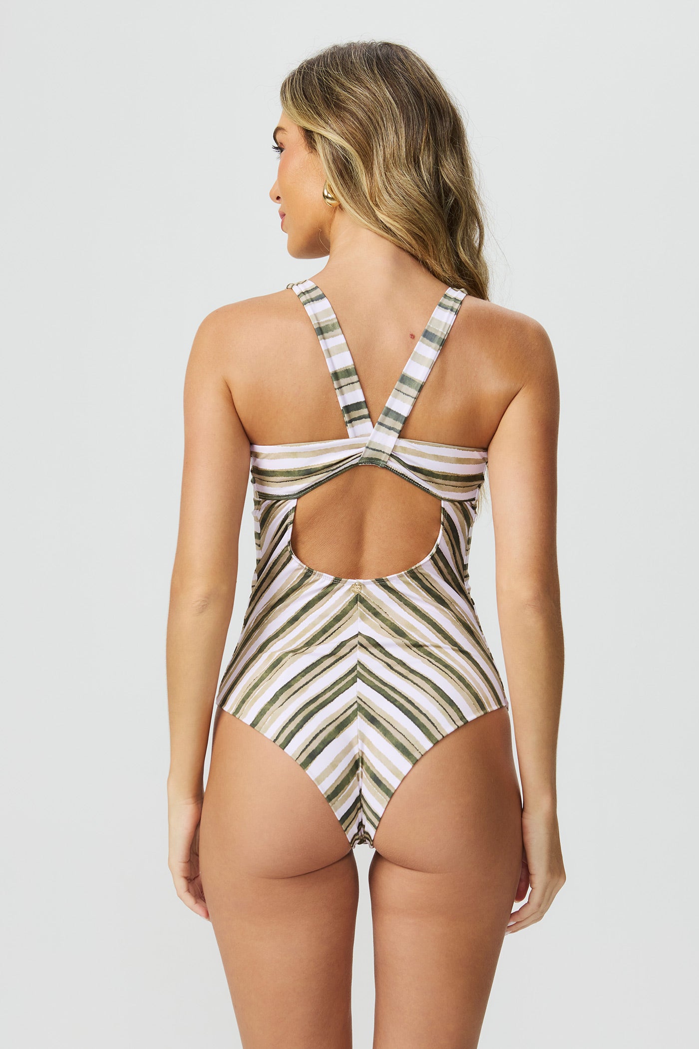 O maiô listrado da Fato Básico é a escolha ideal para quem busca elegância e conforto na moda praia. Sua estampa clássica em tons neutros alonga a silhueta, enquanto o decote em “V” e as costas cruzadas valorizam o corpo com leveza e modernidade.