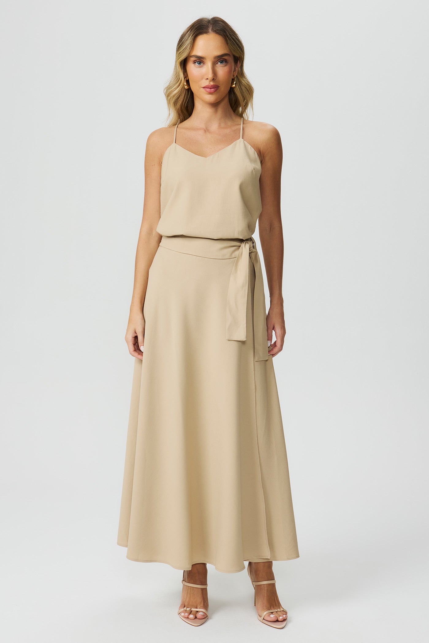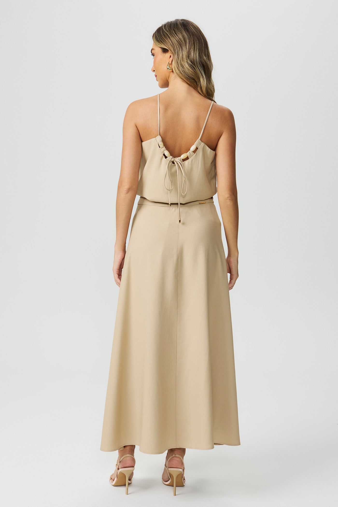 Saia midi transpassada bege Fato Básico